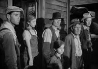 Non-Waltons in bibs: Episode 1 The Sermon: ~4 boys age 6-14 boys with blue bibs at school and open air school (front and back, walk and sit).
